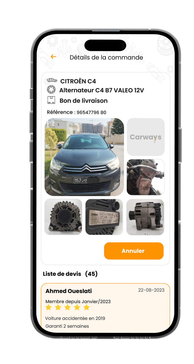 Les utilisateurs peuvent rechercher et commander des pièces de voiture directement depuis leur appareil mobile, ce qui simplifie le processus d’achat et économie de temps