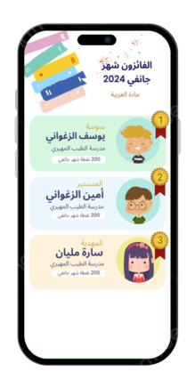 Un cadeau regional (chaque gouvernorat) est distribué à l'élève qui cumule le plus de points durant chaque trimestre